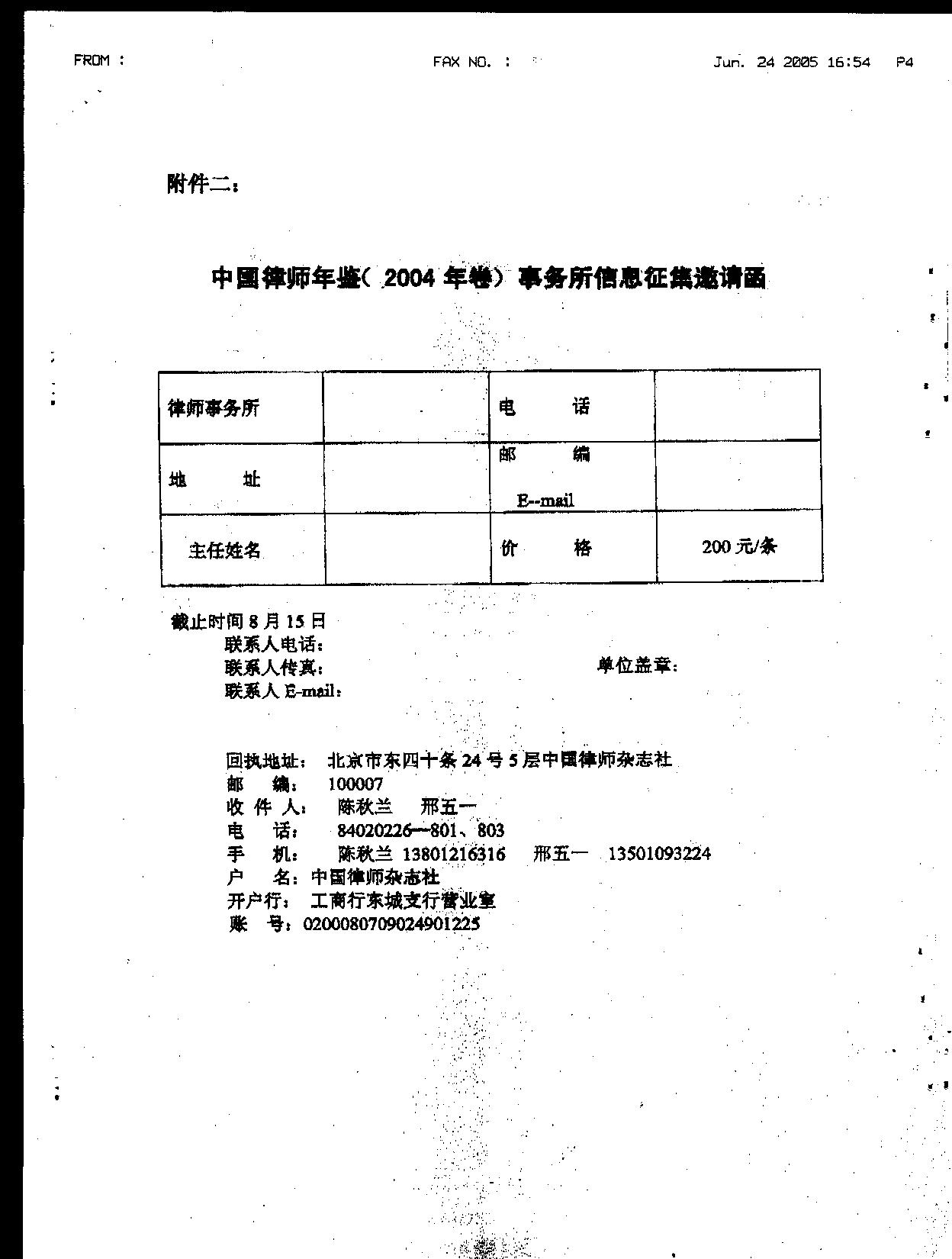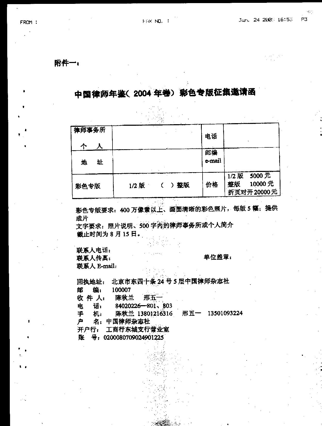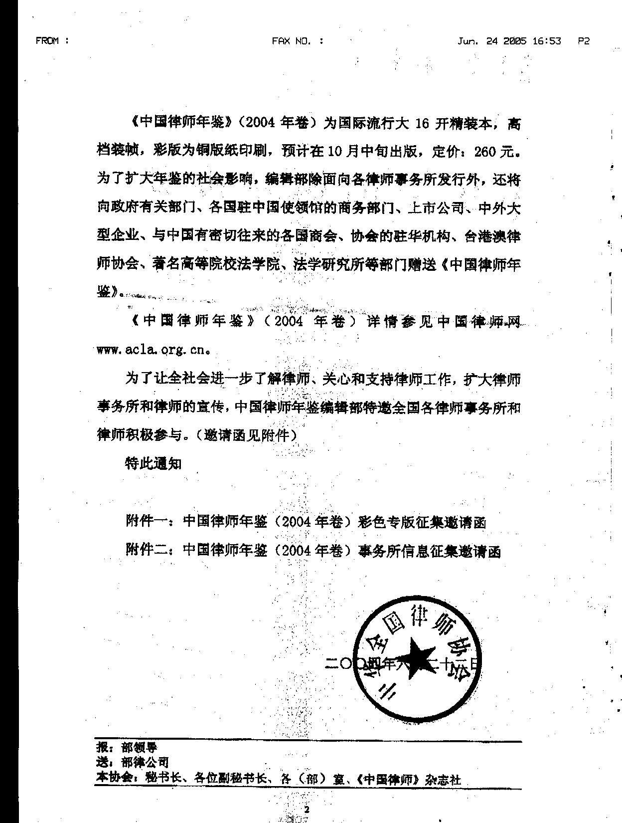 附件:关于进一步做好〈中国律师年鉴〉(2004年卷)发行和广告征集工作的通知