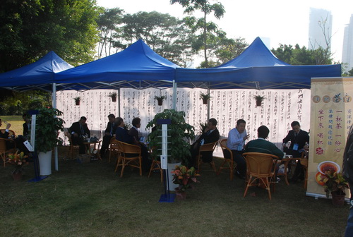 本次活动由市委宣传部、市依法治市办(市普法办)、市司法局和市城市管理局主办,莲花山公园管理处和各区依法治区办、普法办协办。为配合市委、市政府深入开展法制宣传教育的指示,充分展示“深圳律师服务深圳”的精神,市律协精心策划,在活动现场设立“律师茶座”,以挥洒的书法和优美的诗篇为背景,围起了象征着和谐的圆桌,摆上精美的茶具,沏好热腾腾的茶水,并派出我市8名资深律师坐镇现场,在品茶中为市民解答各种法律问题。此外,市律协还准备了《未成年人保护法律知识汇编》、《深圳律师服务指南》、《媒体报道深圳律师》、《深圳律师》杂志等知识手册和宣传资料,并在现场播放市律协20周年庆典宣传短片。活动中,“茶座”座无虚席,茶香飘逸,前来咨询的市民甚至还排起了队,成为活动现场的最大亮点,吸引了众多市民的关注。