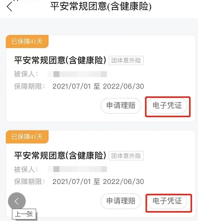 2.查询方式:“我的”--“我的保单”--“保障中”--“平安常规团意(含健康险)”--“电子凭证”点开查询保单号及保单信息。