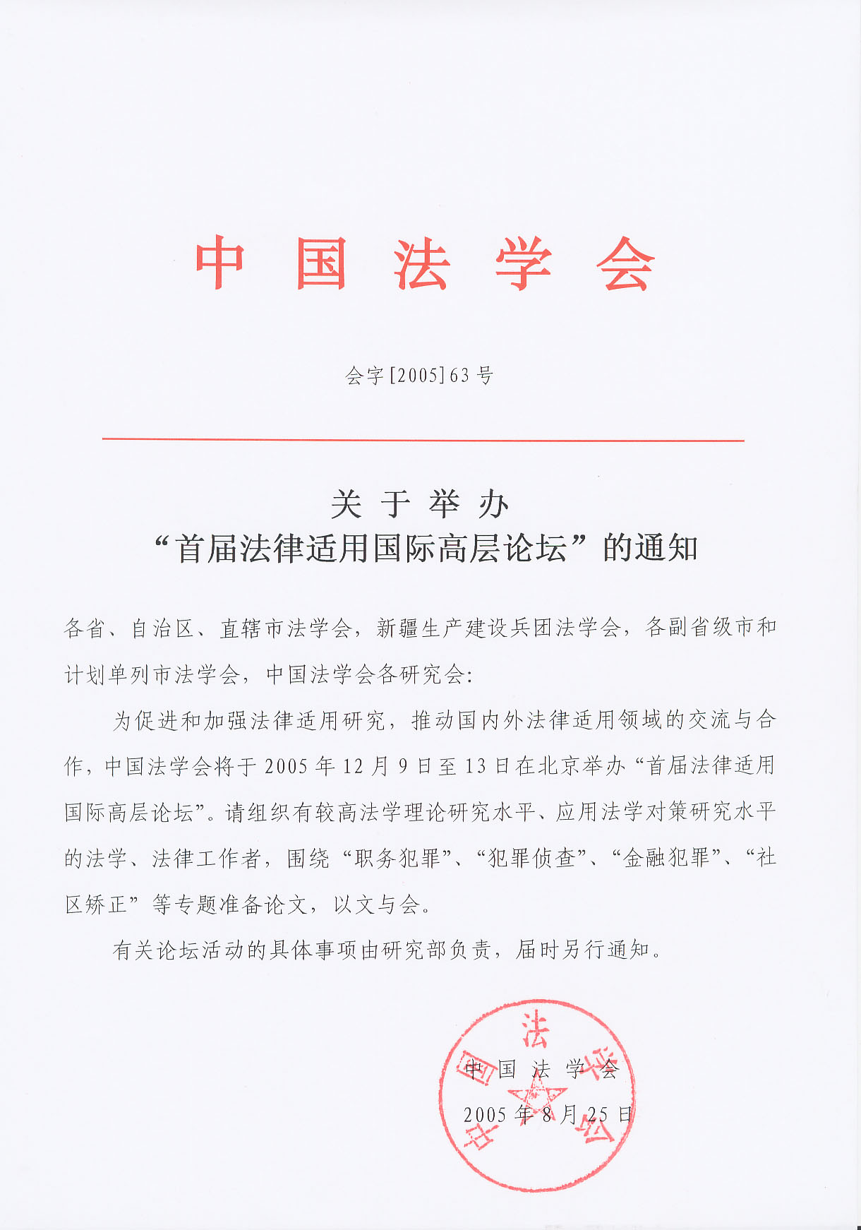 现转发中国法学会《关于举办“首届法律适用国际高层论坛”的通知》,若有律师愿意参加,请认真撰写论文,并于10月30日前按通知规定方式进行联系报名。