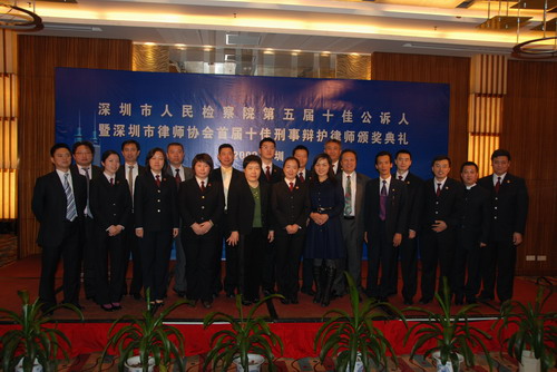 2008 年12月10日 ,由市人民检察院、市司法局联合举行“深圳市人民检察院第五届十佳公诉人暨深圳市律师协会首届十佳刑辩律师颁奖典礼”在深圳博林诺富特酒店隆重举行。市政协副主席钟晓渝,市司法局副局长邹从兵,市检察院吕志峰副检察长,市律协党委书记张勇、副会长陈治民等出席了颁奖典礼并为获奖选手颁发了奖牌。