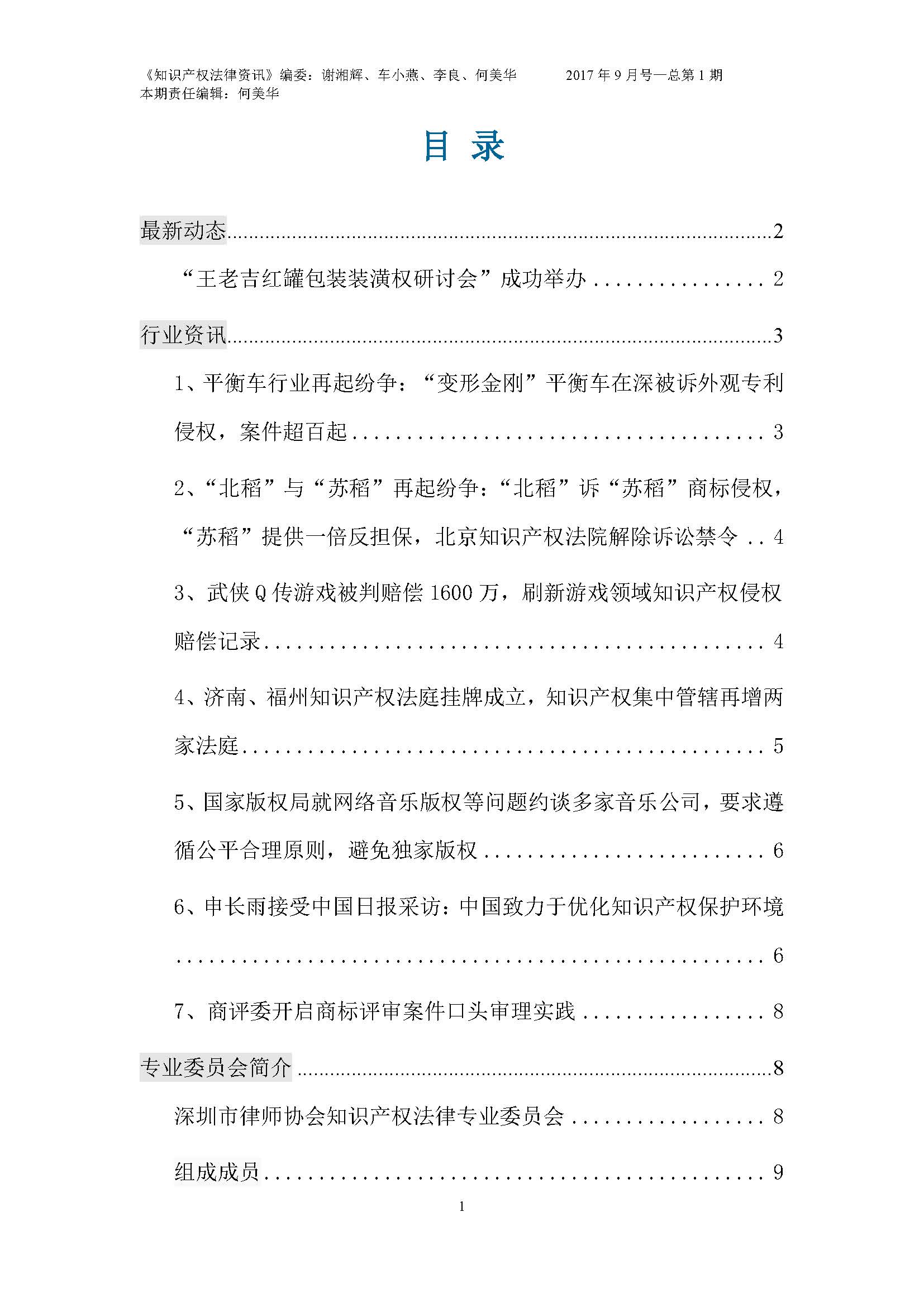 知识产权法律资讯(2017年9月号,总第1期,深圳市律师协会知识产权法律专业委员会编制)