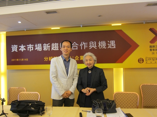2011 年11月19日 ,“两岸三地青年律师论坛”在香港世贸中心会举行。本届论坛以“资本市场新趋势——合作与机遇”为主题,来自内地、香港和台湾的近150位青年律师齐聚香港,探讨如何把握上市融资业务机遇,搭建交流合作平台。我会梁建东副会长、市律协青年律师工作委员会邱旭瑜、陈妙财副主任等六位律师应邀参加了本届论坛。