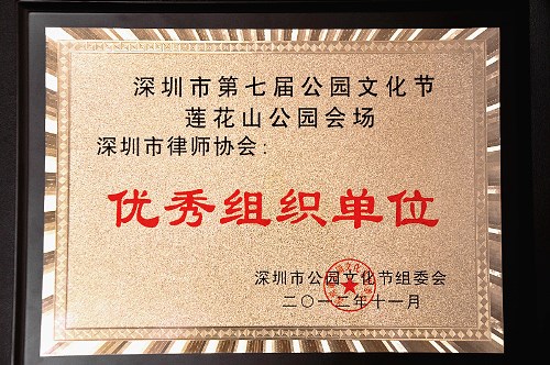 深圳市公园文化节组委会对我会新颖的活动形式及优秀的组织能力给予高度肯定,授予我会深圳市第七届公园文化节莲花山会场“优秀组织单位”称号。