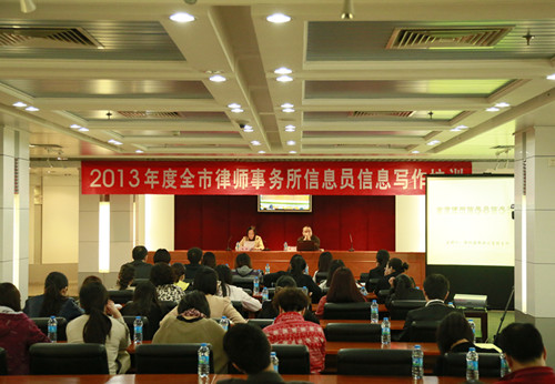 2013年4月12日,2013年度全市律师事务所信息员信息写作培训在市司法局二楼会议室举行。市委办公厅信息处科长李永峰、深圳监狱办公室副主任高飞受邀担任主讲人。全市律所信息员、市律协秘书处工作人员共百余人参加。