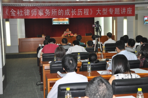 2011 年10月29日 下午,系列讲座第一讲《金杜律师事务所的成长历程》在深圳市司法局会议室拉开帷幕。讲座由市律协余俊福会长主持,特邀全国政协委员、中华全国律师协会副会长、北京金杜律师事务所管理委员会主席王俊峰律师主讲。市司法局邹从兵副局长、市司法局律师公证管理处李玉祥处长、市律协张善华监事长、市律协党委张勇书记、市律协王丽娜副会长以及市律协部分理事、监事出席讲座。能容纳近二百人的会议室座无虚席,部分律师甚至站着旁听记录,整个会场气氛隆重热烈。