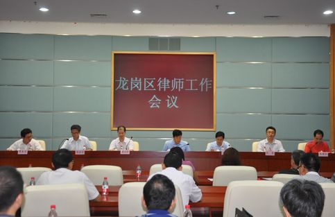 7 月17日 ,龙岗区律师工作会议在龙岗区司法局召开。龙岗区政府副区长华振强、龙岗区司法局局长江育良、副局长吴浚弘,深圳市司法局律师公证管理处处长李玉祥、市律协会长张勇、监事长张善华、市律协龙岗区工作委员会主任蔡春雷出席会议,市律协龙岗区工作委员会全体委员及龙岗区各律师所代表等近200名律师参加会议。会议由龙岗区司法局副局长吴浚弘主持。