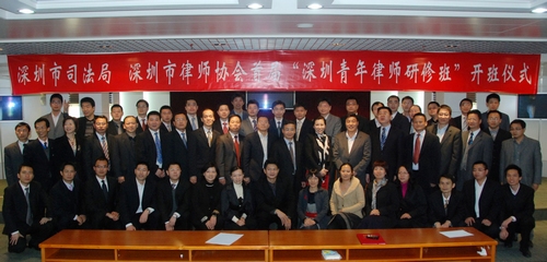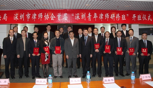 2010年12月31日,深圳律师讲师团授牌仪式暨首期青年律师研修班开班仪式在市司法局会议室隆重开班。市司法局副局长邹从兵、律师公证管理处处长李玉祥、市律协会长余俊福、监事长张善华、党委书记张勇、副会长于秀峰、梁建东、全体理事和监事、律师讲师团全体成员、青年律师工作委员会全体委员及各专业委员会主任出席了开班仪式。