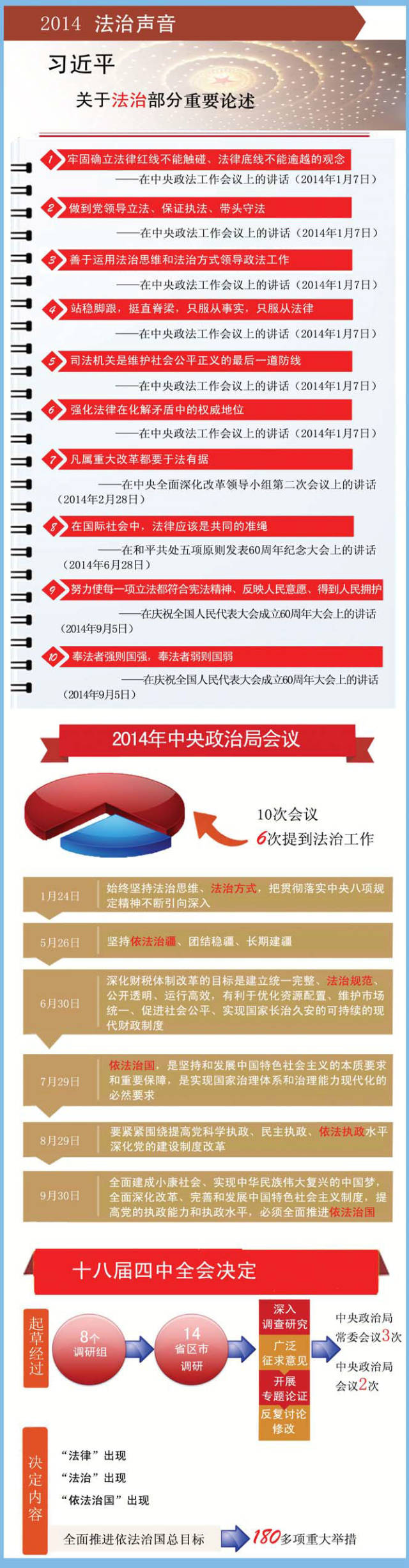 10次政治局会议6次涉法治 四中全会决定出现123次法治 2014“法治”润物无声