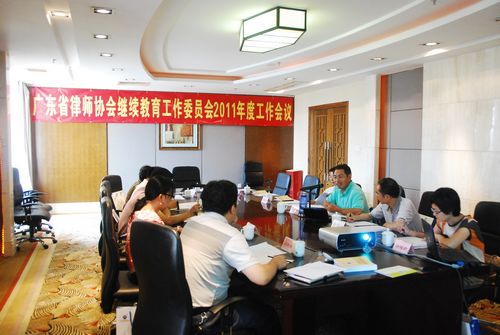2011 年9月17日 下午,省律协继续教育工作委员会2011年度工作会议在惠州市江北新区召开。会议由省律协继续教育工作委员会主任曹春和主持,省律协副会长陈小雄出席会议,我市律协顾东林理事应邀参加会议。