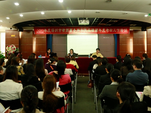 2013年4月2日,市律协在多功能厅分上、下午两批举办2012年度深圳市律师事务所和执业律师年度考核培训。市律协王红代秘书长、市司法局律师公证管理处林少科和全市律师事务所行政人员约400人参加。培训由市律协副秘书长黄红珍主持。